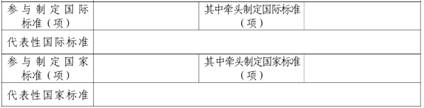 16、最近三年主持和参加制定的国际、国家、行业和团体标准数:指企业在报告年度、报告年度前一年、报告年度前二年主持或参加制定,目前仍有效执行的国际、国家、行业和团体标准的数量。证明材料:正式发布的相关标准文本主要页面复印件。 |